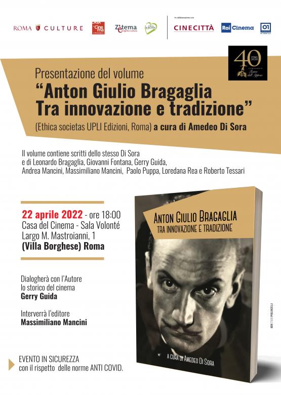 Venerdì 22 aprile 2022, presso la Sala Volonté della Casa del Cinema di Roma in Largo M. Mastroianni 1 (Villa Borghese), alle ore 18:00, si terrà la presentazione del volume “Anton Giulio Bragaglia tra innovazione e tradizione” a cura di Amedeo Di Sora edito da Ethica societas UPLI Edizioni, Roma. Il volume contiene scritti del curatore Amedeo Di Sora e di altri importanti studiosi sull’attività intensa e feconda e sull’ opera multiforme dell’illustre artista e intellettuale frusinate, quali: Leonardo Bragaglia, Giovanni Fontana, Gerry Guida, Andrea Mancini, Massimiliano Mancini, Paolo Puppa, Loredana Rea, Roberto Tessari.