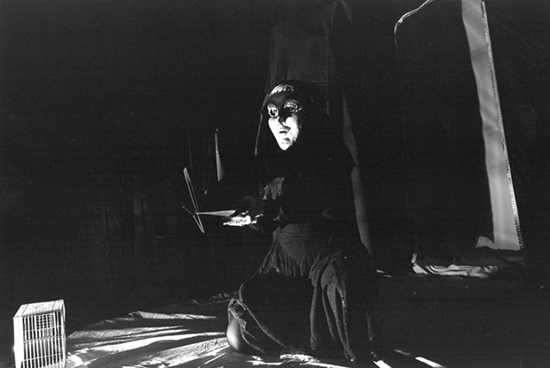 Mi aveva invitato ad assistere ad una prova dell’allestimento scenico a cui stava lavorando: il mio primo impatto con il Teatro dell’Appeso. Quello che s’impose allora alla mia attenzione per rimanere poi vivo nella memoria (…) fu la predominanza delle maschere, manipolate, indossate, deposte, accantonate, quindi tratte nuovamente fuori dall’ombra e dal silenzio, per tornare ad essere esibite nella loro enigmatica presenza, riconsegnate al miracolo della metamorfosi e della parola. Maschere ed oggetti scenici, accuditi circonfusi di un’aura quasi sacrale. Così mi apparve, nella sua prima manifestazione, l’esperienza dell’Appeso.