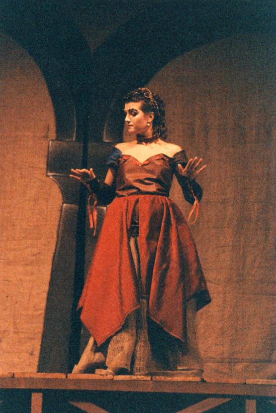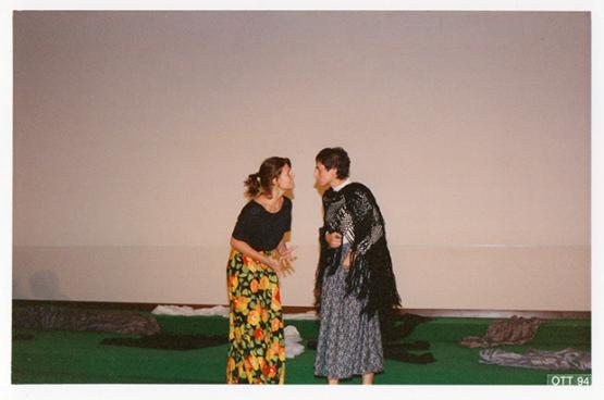 Erano gli anni Novanta, quando i percorsi di Marina Testa e della Compagnia Teatro dell'Appeso s'incrociarono. Un saggio di fine anno e la studentessa di liceo, all'epoca frequentava lo Scientifico di Frosinone nel quale insegnavo e dirigevo un corso di educazione teatrale, diventò presto una neofita attrice. Di pari passo coltivò anche la sua professione, è una giornalista. La sua testimonianza ricorda una feconda esperienza con la Compagnia  e rivela un intimo legame espressivo con il teatro, anima della comunicazione e certo supporto anche per il suo esordio in televisione. Ma per la giornalista frusinate, che ha raccolto e raccontato differenti realtà sociali attraverso la stampa scritta e parlata, il teatro ha sempre avuto soprattutto un valore inestimabile sotto il profilo umano e culturale. Le foto si riferiscono agli spettacoli “La patente” di Pirandello (1993), “Miles gloriosus” di Plauto (1994) e “La Festa perduta” da Pirandello (1994), saggio  finale della Scuola di Teatro “Città di Frosinone” da me diretta (in questa foto, Marina è impegnata in un intenso dialogo con Vilma Marcoccia, allora attrice della Compagnia).