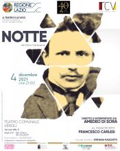 Il sesto appuntamento della Rassegna Teatrale “40 Anni di Utopia Concreta”, che concorre a celebrare il Quarantennale della Compagnia Teatro dell’Appeso nell’ambito della XIV Edizione del Festival “Il Teatro e le Voci”,  si terrà il 4 dicembre 2021, alle ore 21, presso il Teatro Comunale di Veroli in Via Lucio Alfio n° 5.  Lo spettacolo, dal titolo Notte, ideato, diretto e interpre