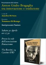 Sabato 30 aprile 2022,  presso la sede dell’associazione “Pentacromo”, in Via Rossini n° 14, a Cassino (FR), alle ore 17:30,  il prof. Tommaso Di Brango presenterà il  volume “Anton Giulio Bragaglia tra innovazione e tradizione” a cura di Amedeo Di Sora edito da Ethica soci