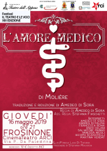Giovedì 16 maggio 2019 alle ore 21:00, presso il CineTeatro ARCI in Via P. da Palestrina 12 (dietro la stazione ferroviaria) a Frosinone, la “Compagnia Teatro dell’Appeso” presenterà la commedia “L’amore medico” di Molière, nell’ambito del Festival “Il Teatro e le Voci” – XIII Edizione.
